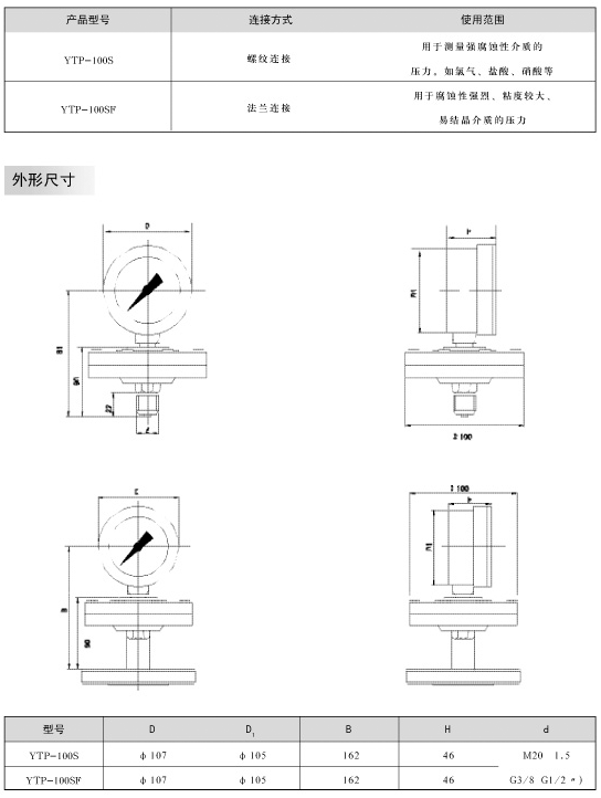 >> YTP防強腐全塑隔膜壓力表