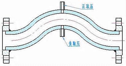 彎管流量計的一次傳感元件——彎管流量傳感器依安裝管線(xiàn)上的不同分為如下三種: &90°彎管傳感器——用于工藝管線(xiàn)90°轉彎連接處,替代原彎頭 &180°彎管傳感器——用于直管線(xiàn)上,替代部分直管段 &135°彎管傳感器——用于工藝管線(xiàn)135°轉彎連接處,替代原彎頭 90℃彎管的外形結構見(jiàn)下圖: