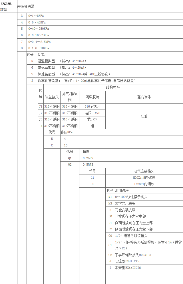 ARS3851DP電容式差壓變送器,以差動(dòng)電容為檢測原理組成電容式變送器,原材料、元器件和零部件均選用進(jìn)口,整機經(jīng)過(guò)嚴格組裝和測試,該產(chǎn)品具有設計原理先進(jìn)、品種規格齊全、安裝使用簡(jiǎn)便等特點(diǎn)。外觀(guān)上完全融合了目前國內最為流行,并被廣泛使用的兩種變送器(羅斯蒙特3051與橫河EJA)的結構優(yōu)點(diǎn),同時(shí)與傳統的1151差壓變送器、3351差壓變送器在安裝上可直接替換,有很強的通用性和替代能力。輸入壓力分別為0~6KPa,0~40KPa,0~250KPa等。使用對象:液體、氣體和蒸氣。